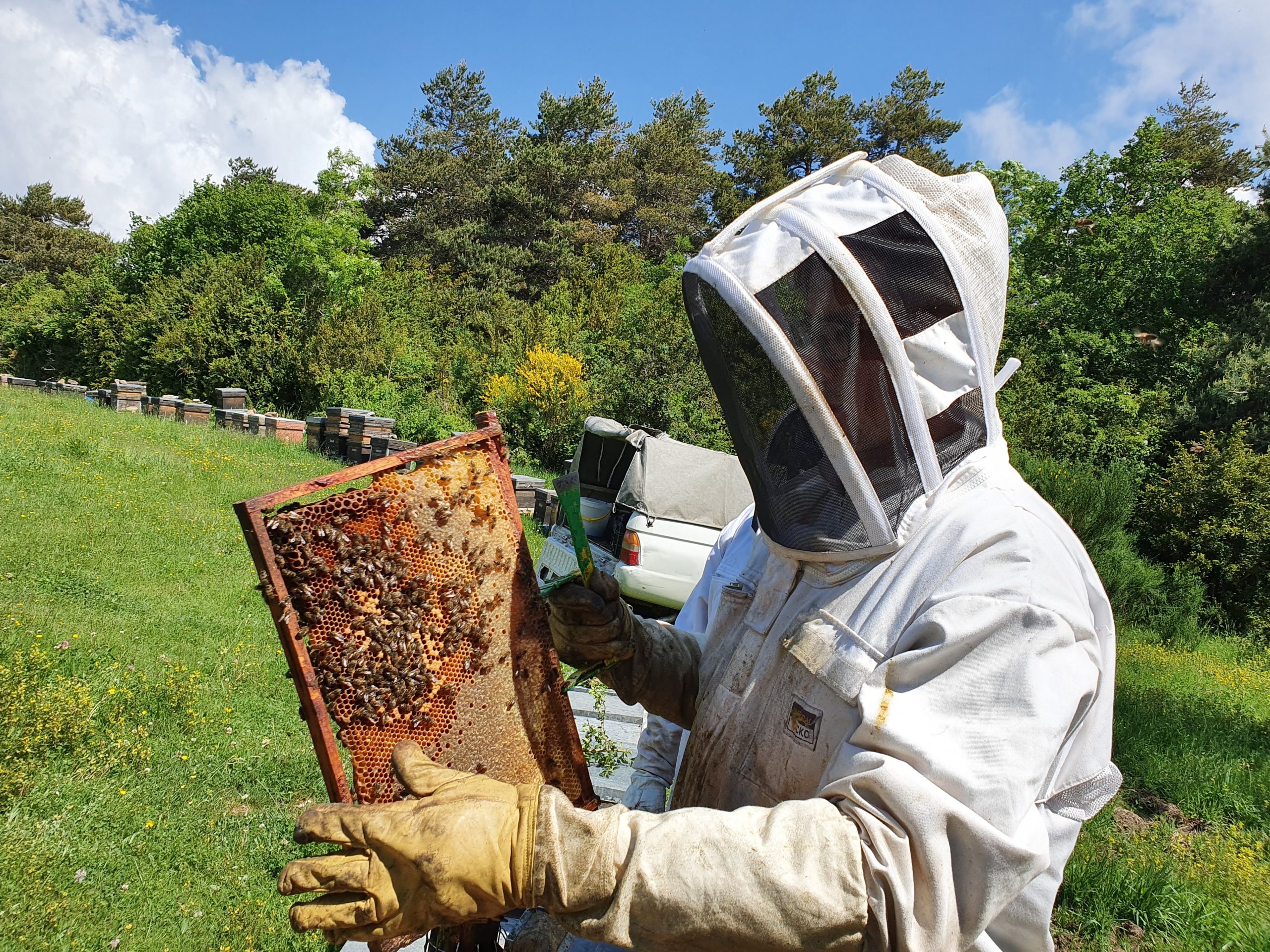 Preparació de la Barreja: La barreja utilitzada per encerarar el cotó es compon de cera pura d’abella de la mateixa explotació, oli d’ametlles i resina vegetal. Cada un d’aquests ingredients és clau: la cera li proporciona una barrera natural i resistent a l’aigua, a més és antibacteriana, l’oli d’ametlles li aporta suavitat, flexibilitat i adherència, i la resina li dona duresa i resistència.